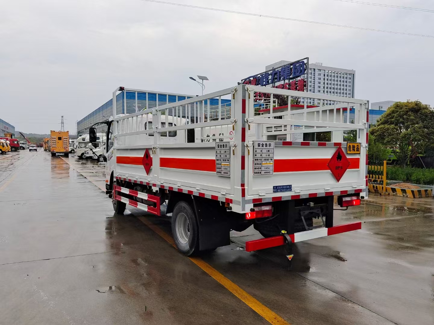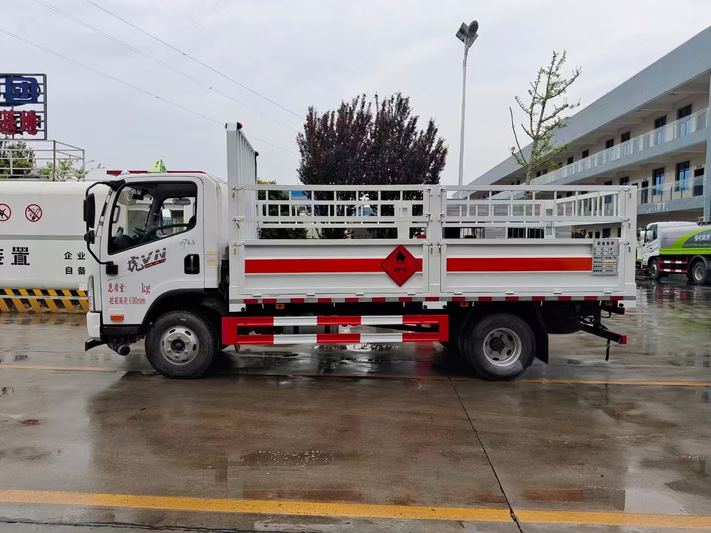 | 底盤配置 | 虎VN平頂單排駕駛室,錫柴CA4DB1A14E68,6GS42,270沖焊橋(速比4.875、輪距1640),速比4.875,7.50R1616層級真空胎,帶國產(chǎn)ABS,前盤后楔制動器,空調(diào)+電動門窗+中控鎖,氣喇叭,高架箱,80L鋁合金油箱,板簧3/7+3,前輪帶爆胎應急裝置,前碰撞預警+車道偏離輔助預警,前下防護,防飛濺擋泥板,排氣火花熄滅器,限速79km/h,北斗+GPRS行車記錄儀(帶視頻記錄功能),帶靜電拖地帶,NFH,危險品專用底盤 | ||