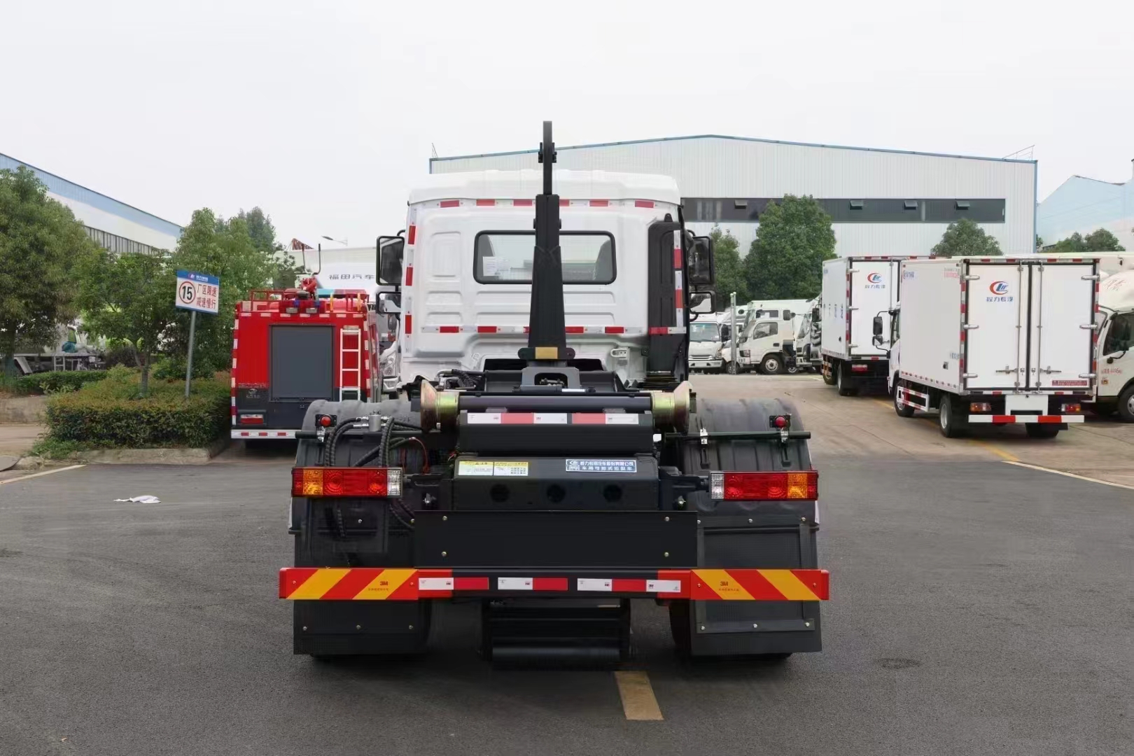 | 上裝配置 | 配套14-16方勾臂垃圾箱或移動站,主勾臂由高強度板材制作,雙油缸控制,伸縮式主臂,加強型上裝結構,液壓支腿,橫向鎖緊,品牌多路閥,進口柱塞泵,標配室內(nèi)外操作(帶遙控),防誤操作,帶平衡閥,液壓鎖。 | ||