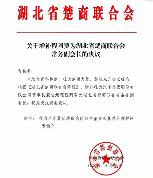 “虎威熠熠踏征程,八面來風共聚首”,程阿羅總經(jīng)理作為省青企聯(lián)會長暨湖北省楚商聯(lián)合會常務副會長,由于其掌舵的程力汽車集團在中國專汽行業(yè)所作出的突出貢獻,特別是2021年在疫情反復肆掠,各種自然災害和國際國內(nèi)市場震蕩低迷等不確定因素疊加效應影響下,程力集團萬眾一心攻堅克難,全年完成87億專汽產(chǎn)值,仍保持了2位數(shù)的百分比增幅,在全省“緩復蘇、補損失”的大環(huán)境下,保持了穩(wěn)健的發(fā)展勢頭,應邀出席了湖北省年度經(jīng)濟工作會議,聆聽了湖北省委應勇書記和王忠林省長的發(fā)言和工作報告,積極為湖北經(jīng)濟發(fā)展建言獻策。