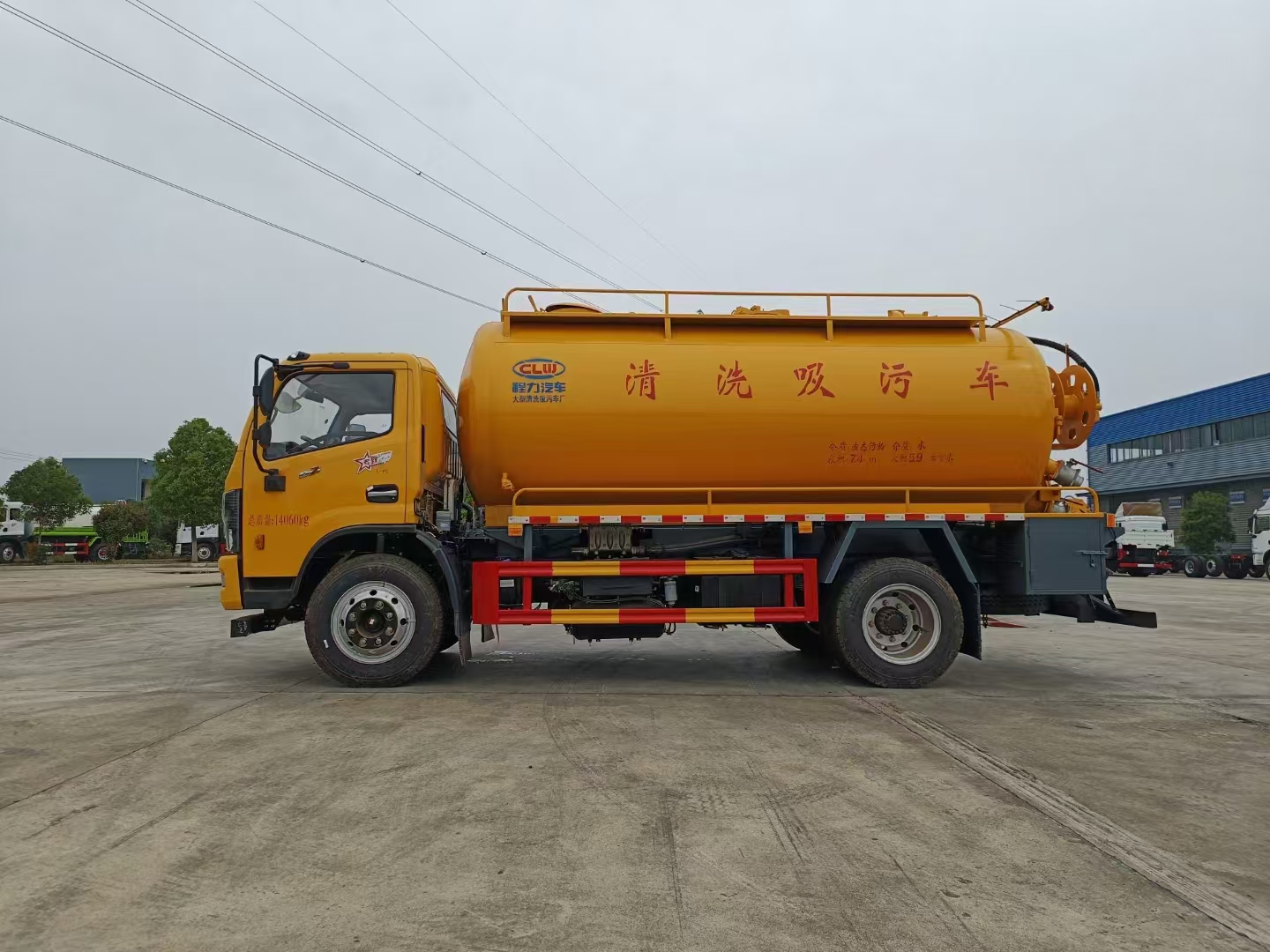 | 污水罐 | SK-12水循環(huán)泵,水循環(huán)泵水箱為碳鋼材質,頂部防溢閥位置盡量最低,尾部開大蓋,100球閥直通罐頂吸污,吸污壓力表裝在水箱附近,罐體尾部兩側工具箱,手動油門,1根8米吸污管帶陰陽端接口,10個組合槍頭,其他廠內標配。 | ||