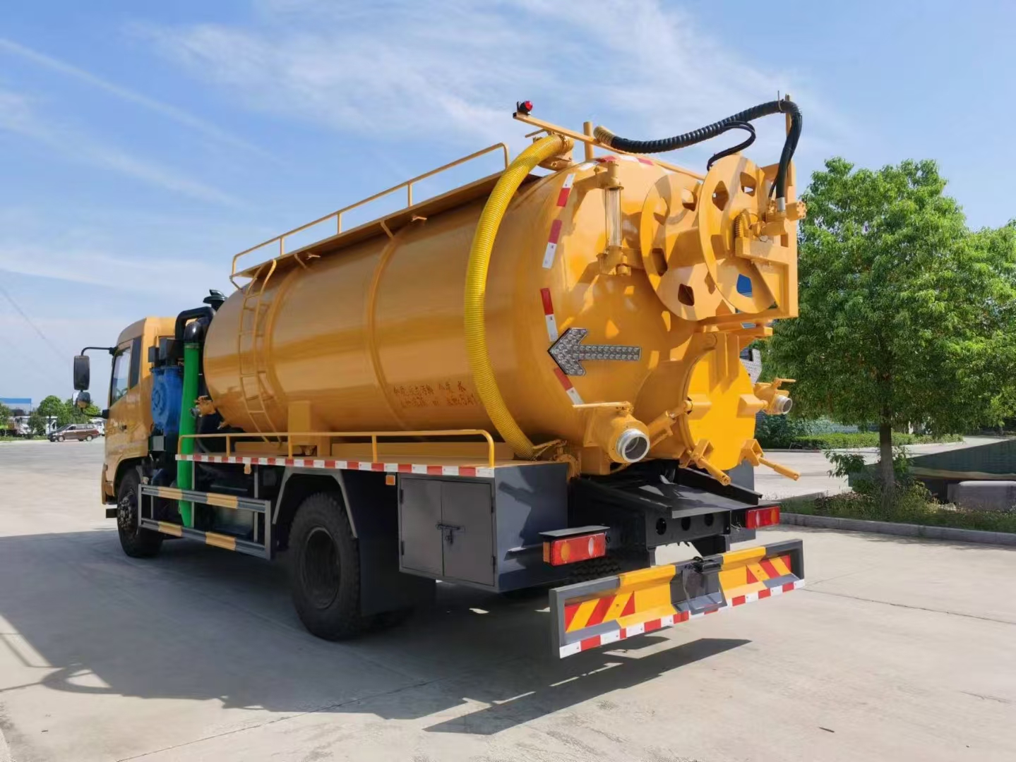 | 上裝配置 | 罐體容積15立方左右,清水罐5立方,其余為污水,罐體8mm厚,封頭8mm厚,舉升頂為自卸中置頂,副駕駛一側(cè)清水罐和污水罐用DN100球閥互通,另罐頂裝一個互通,副駕駛一側(cè)按照公告圖片安裝爬梯;清水罐:品孚350高壓泵,罐頂水車罐口一個,帶爬梯,高壓管100米22號高壓管,尾部液壓卷盤,左右各裝一個消防栓進水口,清水罐裝兩側(cè)各一個小球閥,罐底裝一個DN65排水閥, 吸污罐:一個散水罐口,罐體內(nèi)部鋪1.2米不銹鋼板,罐內(nèi)爬梯,罐體內(nèi)部防浪板加固,水循環(huán)泵水箱為碳鋼材質(zhì).副發(fā)濰柴375馬力配SK-30水循環(huán)泵,副駕側(cè)排150鋁合金球閥,開600小蓋排污口,尾部600小蓋左側(cè)一個150排污口,右側(cè)一個100的進料口,側(cè)邊一個100排清水,罐體尾部兩側(cè)工具箱,1根10米吸污管,箭頭燈,手動油門… | ||