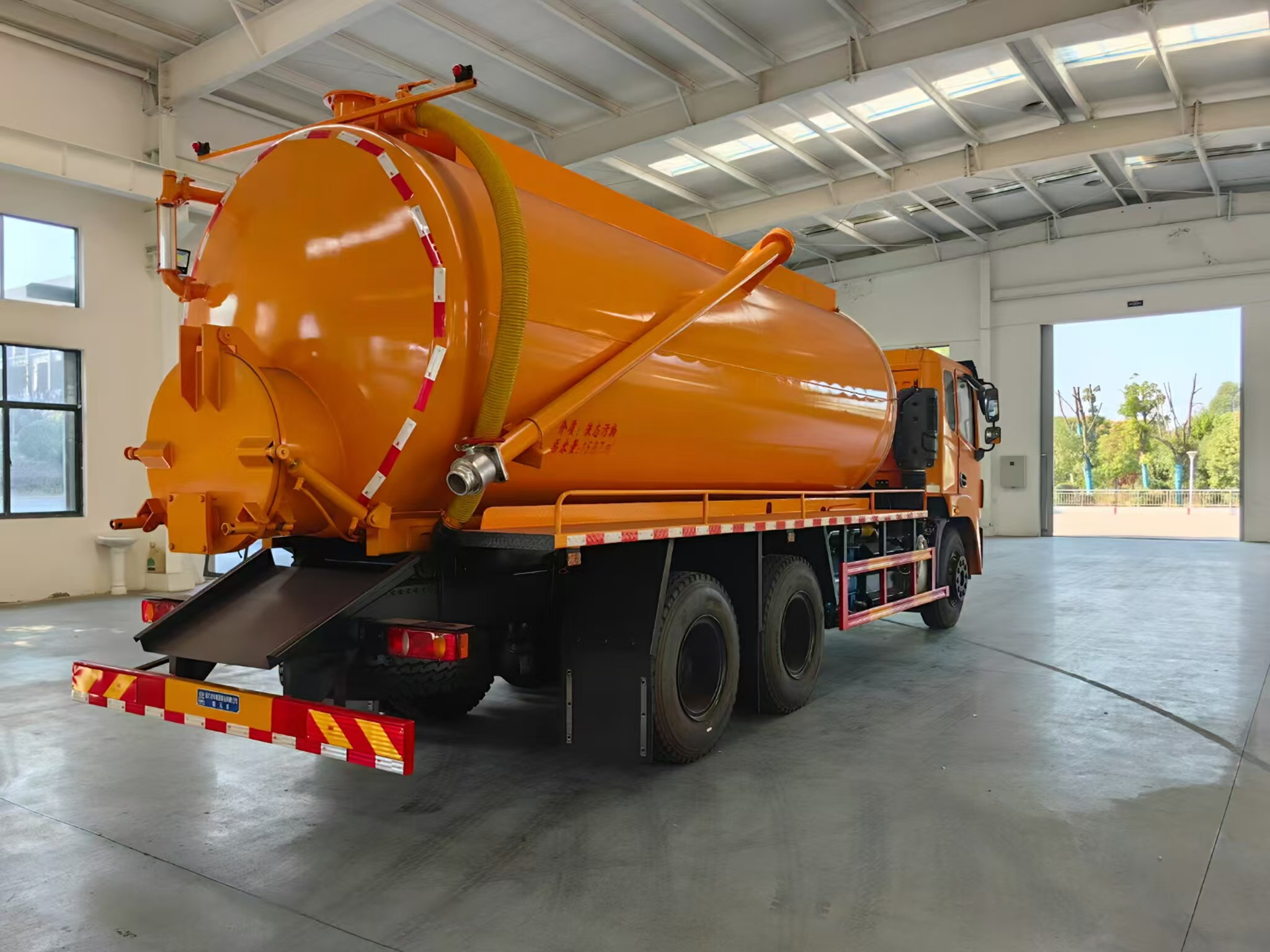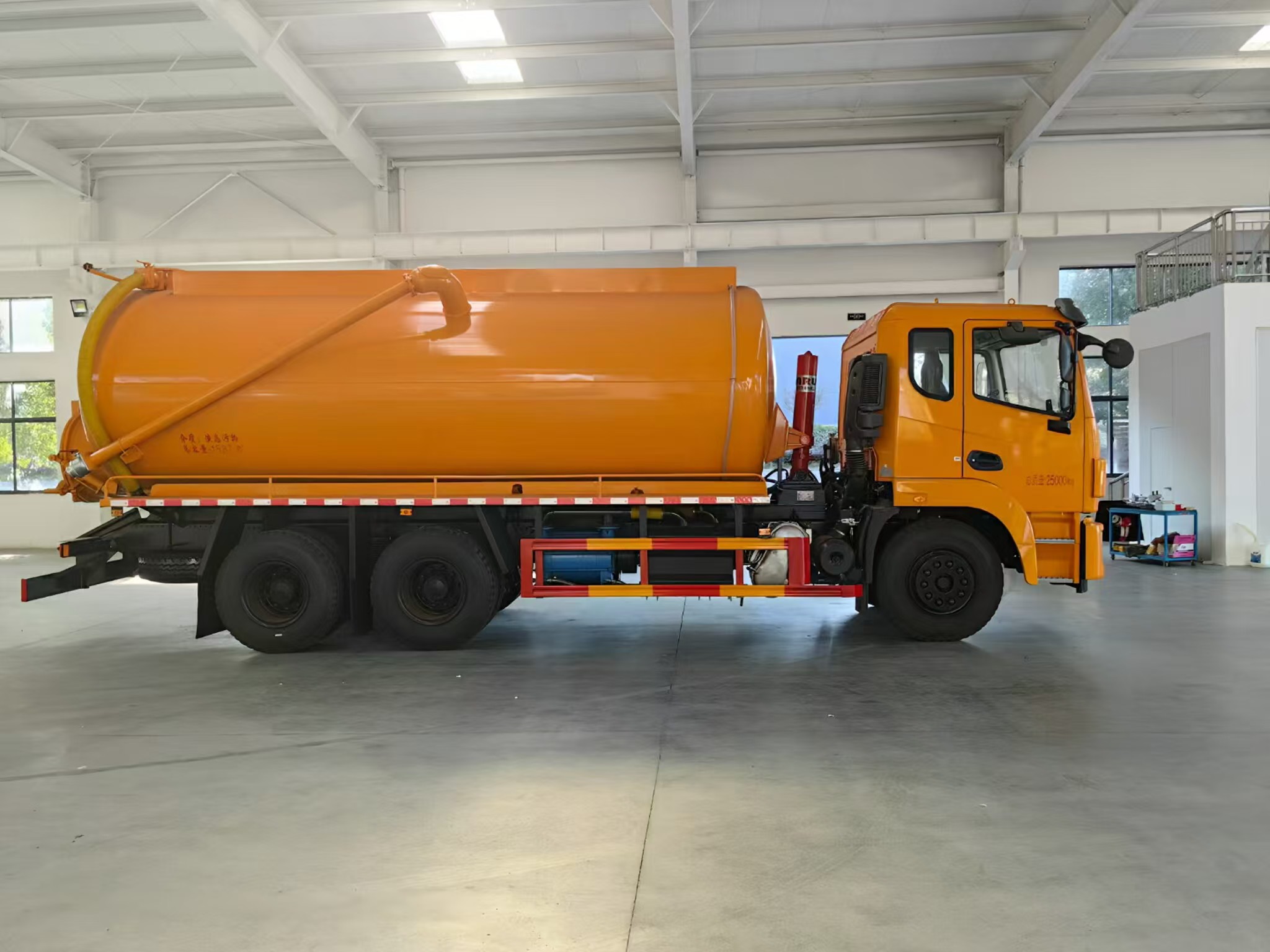 | 上裝配置 | 罐體容積約20方,8m碳鋼板材,選裝安裝山東204水環(huán)泵配,后封頭液壓打開(kāi)。后封頭上一個(gè)800水泥蓋放污,可液壓開(kāi)啟,后封頭一個(gè)6寸出口,一個(gè)100寸進(jìn)口直通罐頂,加強(qiáng)型車架,自卸車設(shè)計(jì),罐體帶舉升功能(前頂自卸),罐體尾部箭頭燈,帶一個(gè)視污窗口。帶8米吸污管。其余廠內(nèi)標(biāo)配! | ||