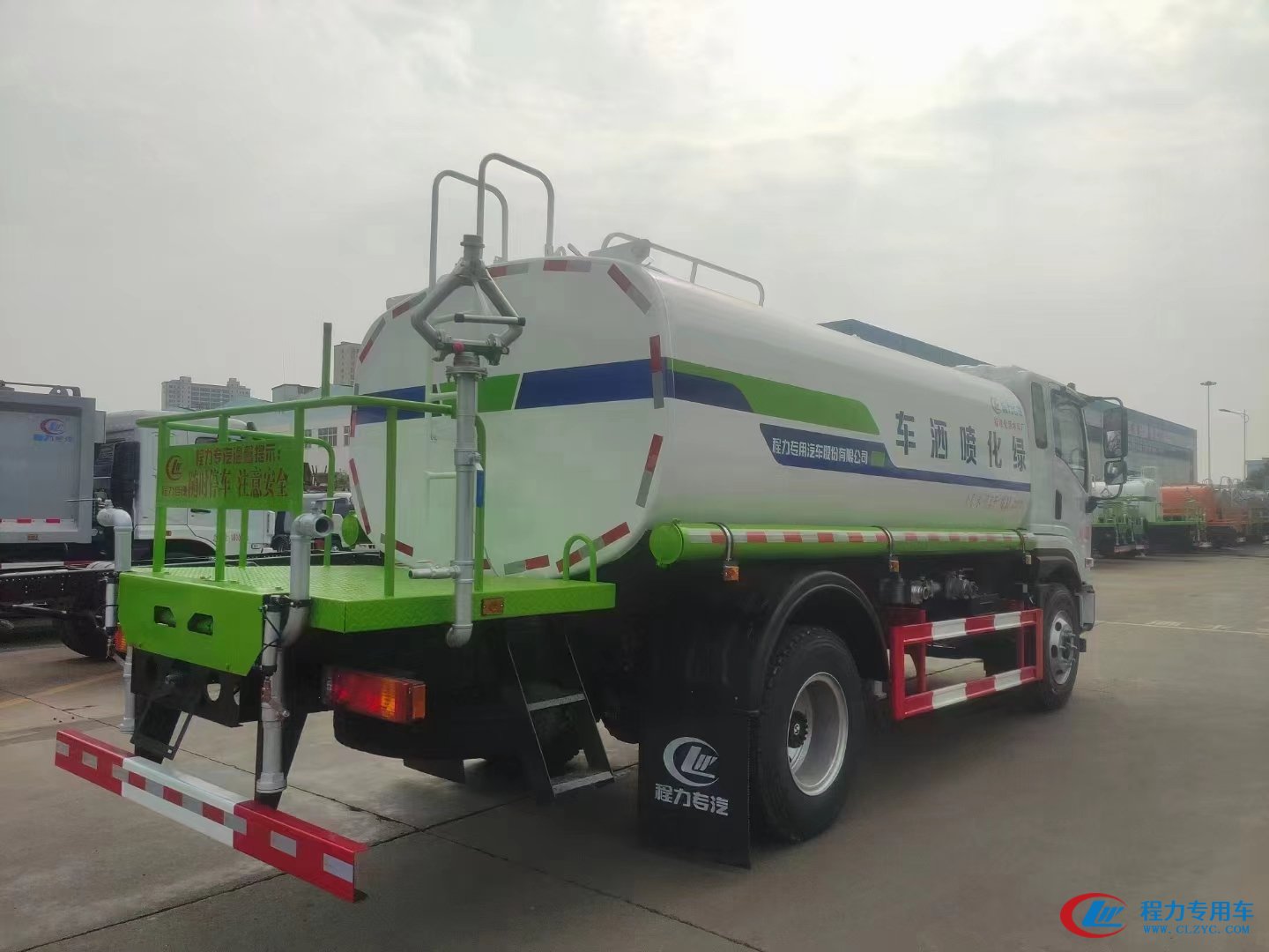 | 上裝配置 | 上裝武鋼優(yōu)質(zhì)碳鋼板,容積12立方,厚度4mm,封頭5mm,前后封頭機器人自動焊,內(nèi)設(shè)隔浪板,帶液位計, 配程力原廠大功率灑水泵,帶駕駛室電控操作,前沖后灑4個新式不銹鋼切斷閥,前沖 后灑 側(cè)噴 后高炮,后高炮可調(diào)節(jié)柱狀 雨狀和霧狀,新式?jīng)_孔工作平臺,主管道加粗,副管道全采用優(yōu)質(zhì)鍍鋅管道,帶自吸自排,自流閥,消防接頭,過濾裝置,邊燈帶電,其他標(biāo)配… | ||
