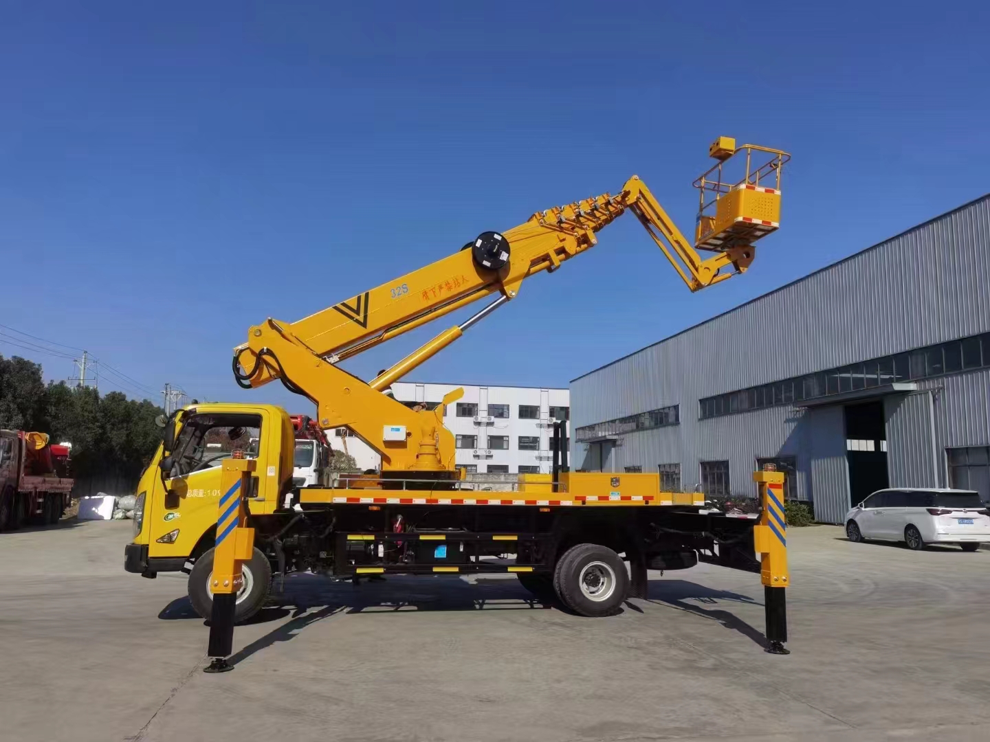 | 上裝配置 | 作業(yè)高度32米,帶小飛臂,六節(jié)六邊形同步伸縮工作臂,360度連續(xù)回轉(zhuǎn),配上下車自動(dòng)互鎖裝置,水平檢測(cè)功能,支腿檢測(cè)功能,裝有應(yīng)急電動(dòng)泵,電液比例控制系統(tǒng),實(shí)現(xiàn)無(wú)極調(diào)速,液壓自動(dòng)調(diào)平。 | ||